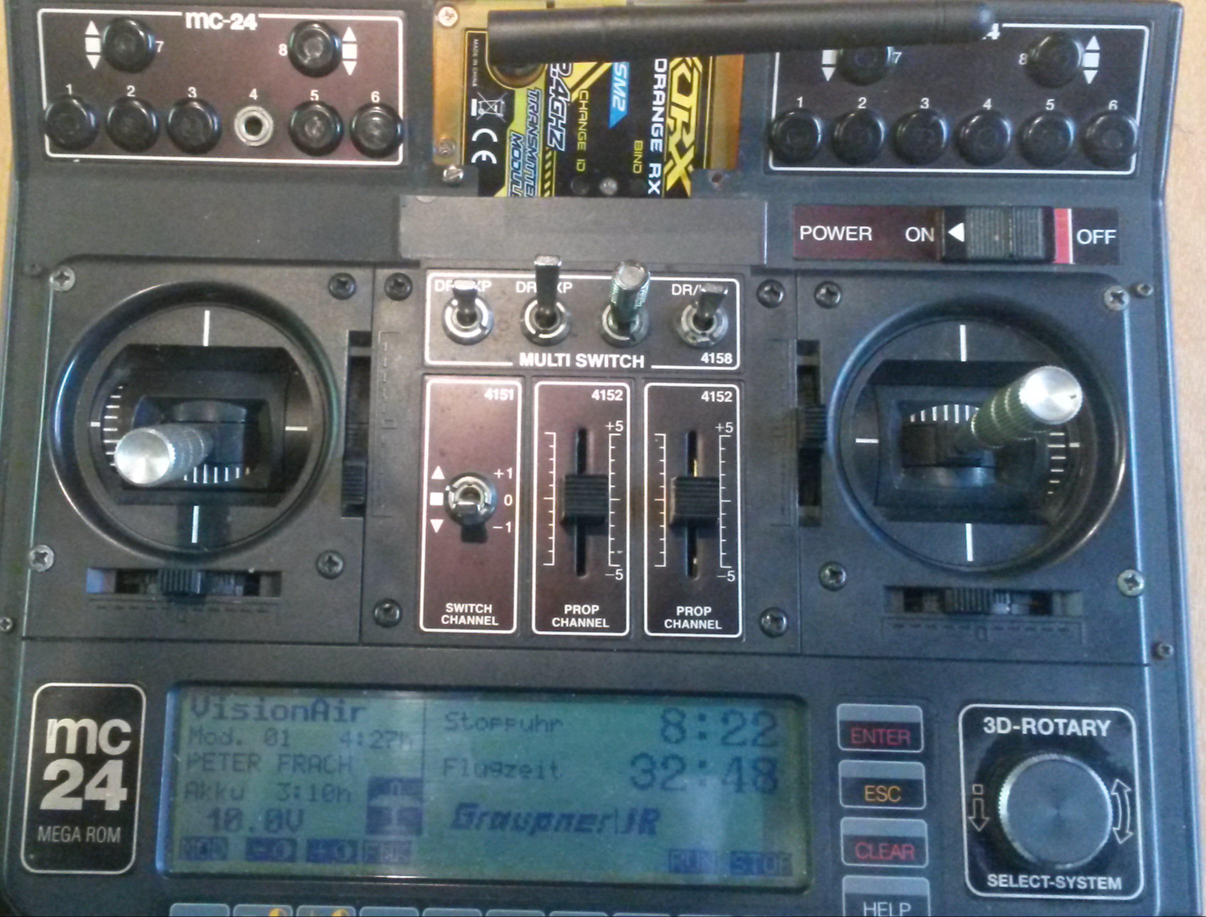 Nachdem ich zunächst das Jeti TU-Modul in meine betagte MC24 implantiert hatte, bin ich in dieser Saison auf den Jeti DS16 Sender umgestiegen.