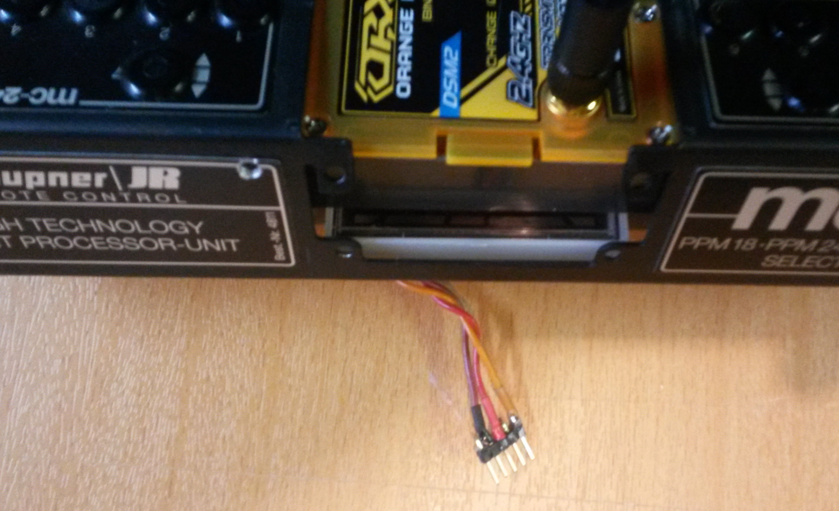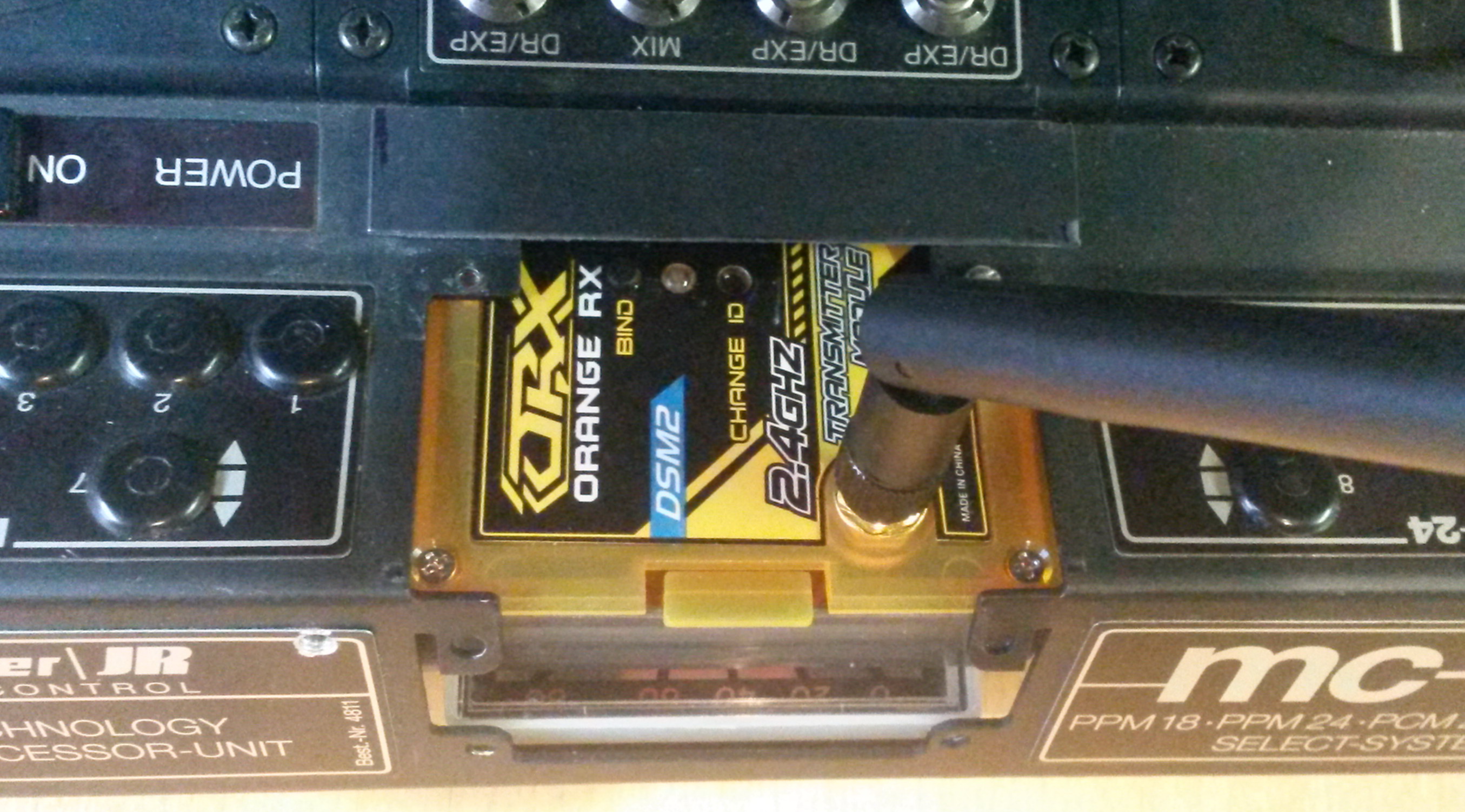 Es kam natürlich der Wunsch auf, die o.g. Modelle auch mit dem Jeti Sender zu steuern. Außerdem lockte die Möglichkeit, die älteren Modelle bei geringen Kosten mit den sehr billigen, aber dem Vernehmen nach für kleinere Modell aber durchaus brauchbaren Orange Empfängern um zu rüsten.