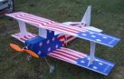 Wenn man so knapp 100 Flieger gebaut hat, stellt man das fertige Modell hin, fliegt es einfach und nimmt dann etwas Feinabstimmung vor. Nicht so bei der Ulti. Zunächst fliegt sie, obwohl Doppendecker und Leichtgewicht, in der Halle unangenehm schnell. Beim engen Kurven mit dem Querruder sinkt das Rumpfende - warum auch immer - nach unten. Das Modell stellt sich etwas quer, verliert dadurch schlagartig an Fahrt und Steuerwirksamkeit. Na ja, ich wollte schon immer üben, nur mit Seitenruder zu fliegen, für den Fall, dass mal ein Querservo ausfällt. Nur mit Seite und Höhe läßt sich das Teil einwandfrei kurven und fliegen. Nach einigen Versuchen mit Schwerpunktänderungen und Mischen von Quer mit Seite fliegt die Ulti jetzt leidlich. Sie ist aber nach wie vor zu schnell für die Halle und für exakten Kunstflug kaum zu gebrauchen.