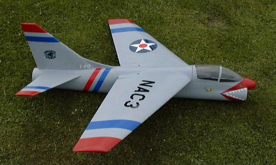 Den Styroporbausatz der Corsair erstand ich zusammen mit dem RK 709 Impeller aud einem Flugtag direkt bei Peter Schmalenbach. Es scheint sich um eine der ersten Ausführungen gehandelt zu haben, denn die Teile paßten nicht zusammen und hatten andere Maße als der Plan. Die ungünstige Anordnung der Impellereinheit brachte Schwerpunktprobleme, die im Plan vorgesehenen Einbaumöglichkeiten für Regler und RC-Anlage ließen sich trotz kleiner Komponenten nicht realisieren. Da ich prinzipiell alles fertigbaue, was ich anfange und es zwischenzeitlich Microservos gab, wurde das Modell dann doch noch mit einem ansehnlichen Ergebnis fertiggestellt. Die Motorisierung besteht aus einem Ultra 930/6 mit 11x 2400er- Zellen. Bei einer Standstromaufnahme von knapp 30A ergibt sich eine beachtliche Laufzeit von 4,5Min. bei Vollast. Trotz des Gewichts von 1.75kg sind Steigleistung und Fluggeschwindigkeit gut, die Flugeigenschaften sind ausgewogen. Das Finish des Styropormodells besteht aus 25/49gr Glasseide/Epoxy und Acryllack. Ein Verspachteln auch glatter Styroporteile mit Leichtspachten spart erheblich an Gewicht da sich beim Beschichten kein unnötiges Epoxy in Hohlräume des Styropors drückt. Das Modell wird spektakulär und komfortabel mit der "Gummi-Flitsche" von Multiplex gestartet.