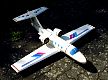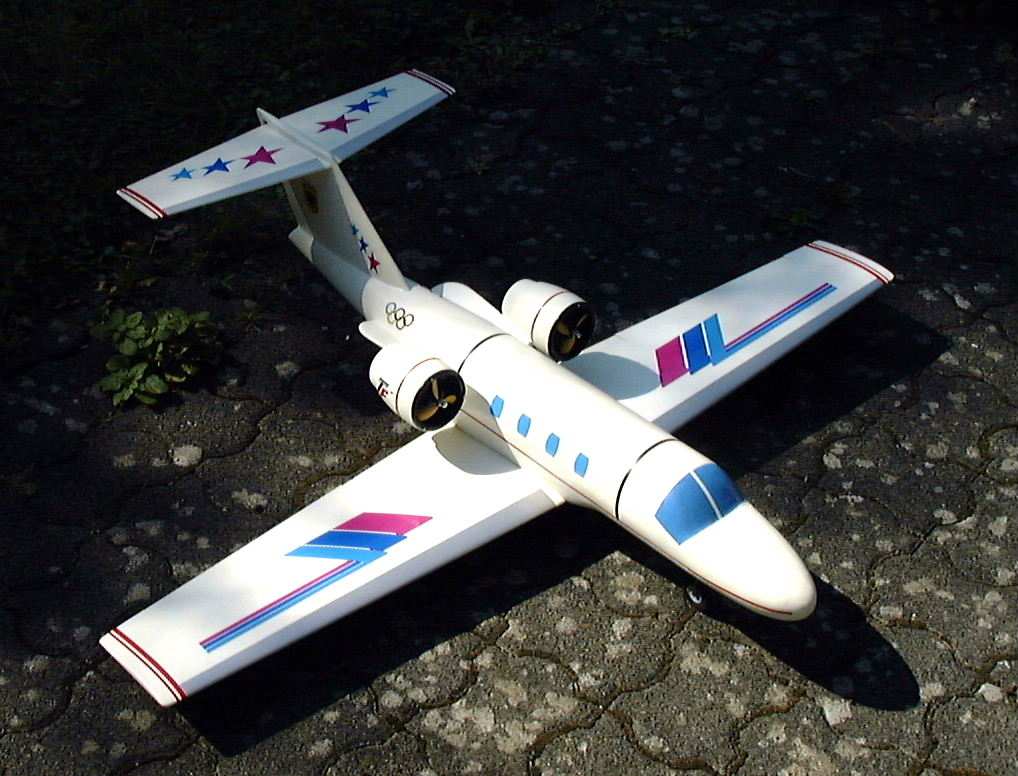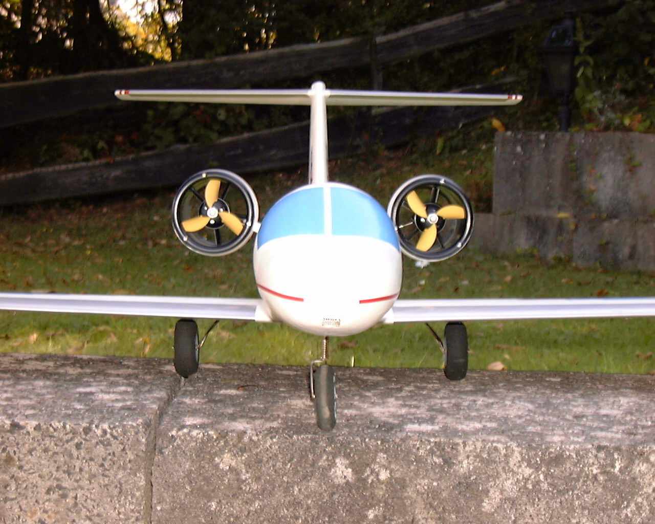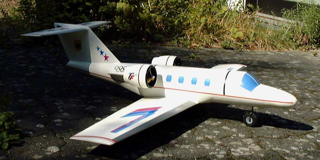 Die Cessna Citation basiert auf einem Plan von Offshore, von wo ich auch den Liefernachweis für einen Styroporteilesatz erhielt. Das Modell ist mit 2 kleinen Schwerdtfeger- Impellern nebst den dazugehörigen Gondel ausgestattet. Für den Antrieb sorgen 2 LRP 400E Motore und 9x1000Sanyo. Das Modell kann mit einem niedrigen und dadurch leichtem Fahrwerk ausgestattet werden und startet auch von einer Rasenpiste. Das Detailfoto zeigt die wartungsfreundliche Anordung des Akkus und der Bugfahrwerksanlenkung. Das Frontteil wird in Alurohren geführt eingesteckt und von Magneten (von Reed-Relais) gehalten. Die Flugeigenschaften sind gutmütig. Die Cessna wurde mittlerweile auf 3 Lipozellen 3,9Ah umgerüstet, was Bodenstart und Flugdauer drastisch verbessert hat. Das Modell wurde zwischenzeitlich an einen Vereinskollegen abgegeben.