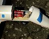 Da der Antrieb der A7 ca 30A zieht, liegt er im Bereich dessen, was man den neuen NIHM-Zellen zumuten kann. Die Umrüstung auf 11xPanas. 3000NIMH brachte bei gleicher Flugleistung dann auch tatsächlich knapp 2Min mehr Flugdauer, sodass nunmehr rund 6,5 Min Vollgas drin ist. Nunmehr fliegt die Corsair zeitgemäß mit Lipo, 3 Zellen 3,9 Ah. Der deutlich leichtere Akku wurde ganz vorne in die Kabinenhaube verlegt, sodass der Schwerpunkt mit nur 20gr Blei eingehalten werden konnte. Die Steigleistung ist durch die Gewichtseinsparung erheblich besser, da mehr Teillast geflogen werden kann, liegt die Flugzeit bei 8-9 Min.