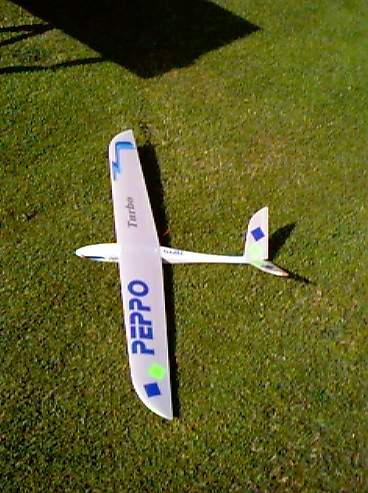 Der Bausatz des Peppo von Simprop qualitativ in Ordnung, das Modell schnell gebaut. Zuerst stattete ich das Modell mit einem Viper-Elektromotor der 480er Größe und 10-Zellen Sanyo 600AE aus. Die Steigleistung war sehr gut, beim Segeln ging es aber nur abwärts. Das Modell wurde dann mit einem etwas leichteren Speed 480(nicht Race) und 8 Zellen Sanyo 600AE umgerüstet. Als Luftschraube tut die 6x3 Folding-Prop von Graupner Dienst, deren Spinner genau paßt. Das damit ca 70gr leichtere Modell hat mindestens die gleiche Steigleistung segelt aber ungleich besser. 8-10 Minuten heizen und segeln ist locker drin. Das Modell ist trotz des geringen Gewichts auch bei höheren Windgeschwindigkeiten noch gut zu fliegen und rundherum empfehlenswert.