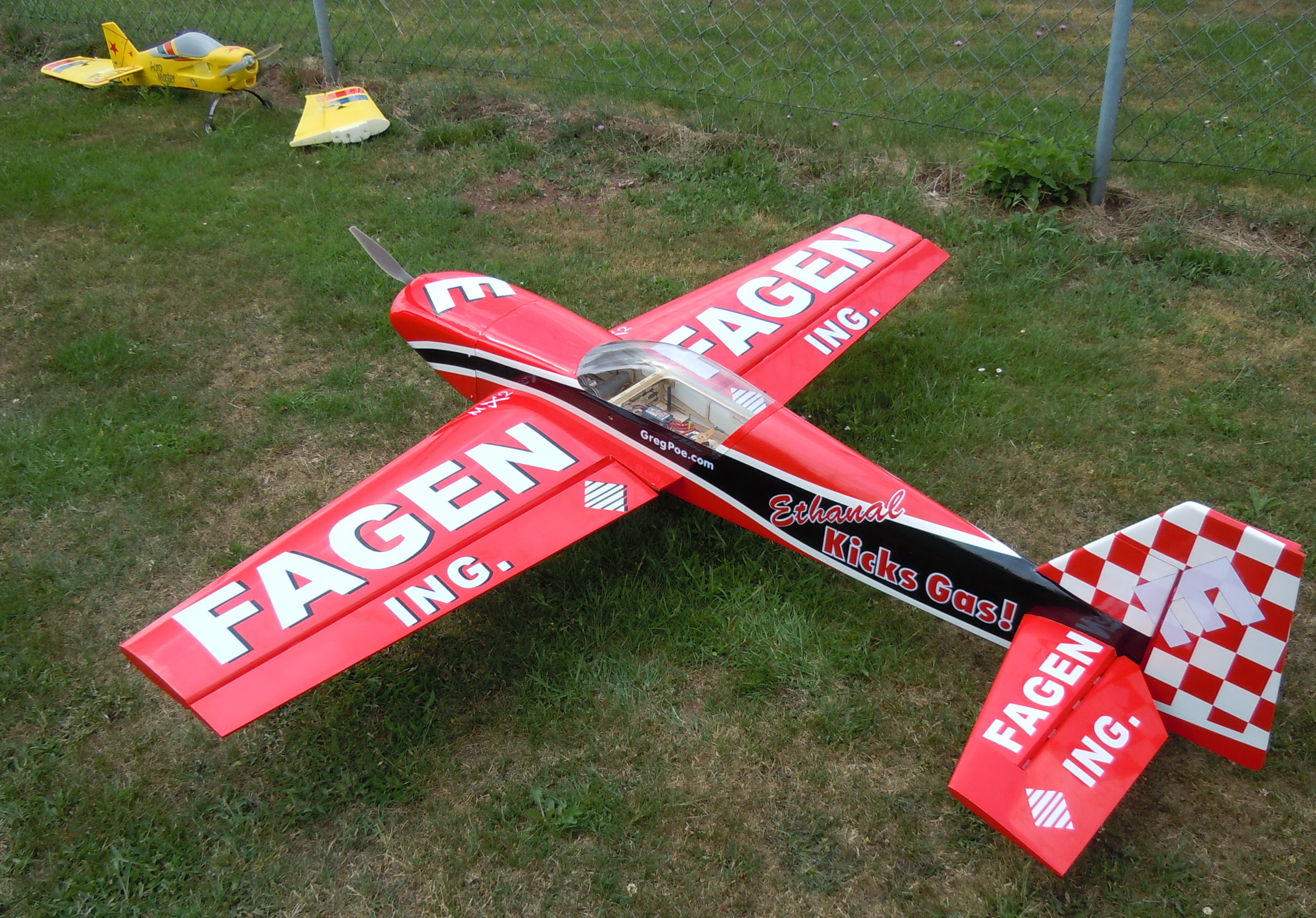 Nach Tests mit der 19x12 APC E bin ich bei der 18x10 APC E geblieben. Beim dynamischen Kunstflug ist das Modell mit diesem Propeller am ausgewogensten. Die Mehrleistung mit der 19x12 braucht man nicht wirklich.