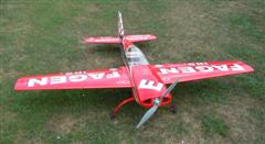 Zu den Flugeigenschaften gibt es nicht viel zu sagen. Sie sind super. Die Maschine flog mit 2 Zacken Trimmung absolut problemlos, sie ist bei Start und Landung unkritisch, Zug und Sturz waren fast optimal. Die endgültige Einstellung folgt hier erst nachdem die beste Luftschraube ermittelt wurde.