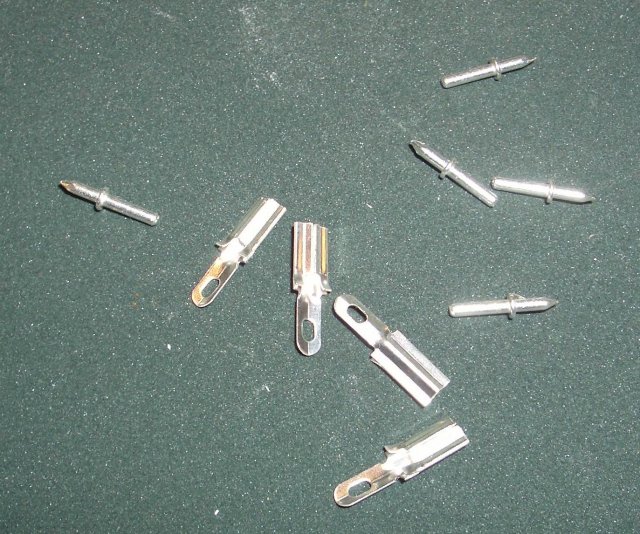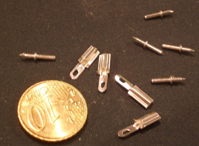 Bei dem Elektronik Versandhändler ELV gibt es sehr preisgünstige Steckverbindungen, bestehend aus einem 1,3mm Lötnagel und einer Blechbuchse, die so geschickt geformt ist, dass einerseits eine vergleichsweise große Auflagefläche und andererseits ein hoher Anpressdruck erzielt wird. Bestechend ist ist insbesondere der Preis von weniger als 2 für jeweils 100 Stecker und Buchsen. Ich verwende die Steckkombination für den Anschluß von Motoren und Reglern in den Foamies, sodass die im Vergleich zum Modell sehr teure Brushless-Einheit schnell aus- und von Modell zu Modell umgebaut werden kann. Hier sind Bilder der Stecker 1, 2, im Modell