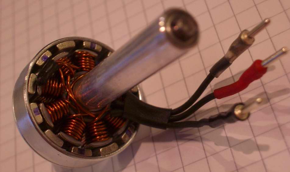 Zugegeben, der Stundenlohn aus der Ersparnis gegenüber einem fertigen Motor ist jämmerlich, aber ich wollte halt mal einen Brushless selbst wickeln. Für eine leichte Depron-Ultimate fiel die Wahl auf den Bausatz des ML 202/5 von modellbau-letmathe. Die Ausführung des Bausatzes ist vorbildlich. Die Kugellager sind bereits in dem Trägerrohr aus Alu befestigt, der Stator ist isoliert, die Magnete markiert und gerundet (!), die Glocke so sauber gedreht und so mit dem Statorring verbunden, dass man keinen Übergang erkennt. Ein Propsaver für GWS-Props ist bereits integriert. Bild des Bausatzes.