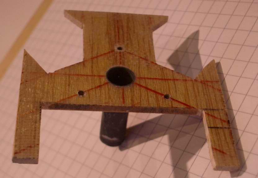 Der Spant der Ultimate ist so ausgelegt, dass sowohl der LM 202/5 als auch der Cyclon alternativ befestigt werden können. Bild1 Bild2 Der Spant sieht übrigens nur so gewaltig aus, er besteht aus 2,5mm Balsa mittelhart, mit beiderseits auflaminiertem 40gr - Gewebe.