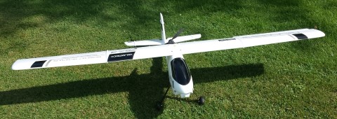 Nach dem Erstflug war ich erst mal froh, das Modell wieder unbeschädigt unten zu haben.Das Modell brauchte ziemlich viel Quer-Trimmung und war mit dem vorgegebenen ( unüblich weit vorne liegenden ) Schwerpunkt extrem hecklastig. Die EWD wurde vermessen und erschien schlüssig, also wurde der Schwerpunkt deutlich zurück verlegt. Diesbezüglich wird zur Zeit noch experimentiert, weil ohne Änderung der Trimmung mit und ohne Kamera geflogen werden soll. Die -abgesehen von der etwas unbefriedigen Ruderwirkung - an sich gutmütigen Flugeigenschaften leiden auch unter dem - zwangsläufig - oberhalb der Rumpfmitte montierten Motor. Dies führt vor allem beim schnellem "Gas" geben zu einer deutlichen Nickbewegungen, die man zum Beispiel einkalkulieren muß, wenn man in niedriger Flughöhe, etwa zum Durchstarten, die Pulle reinschiebt.