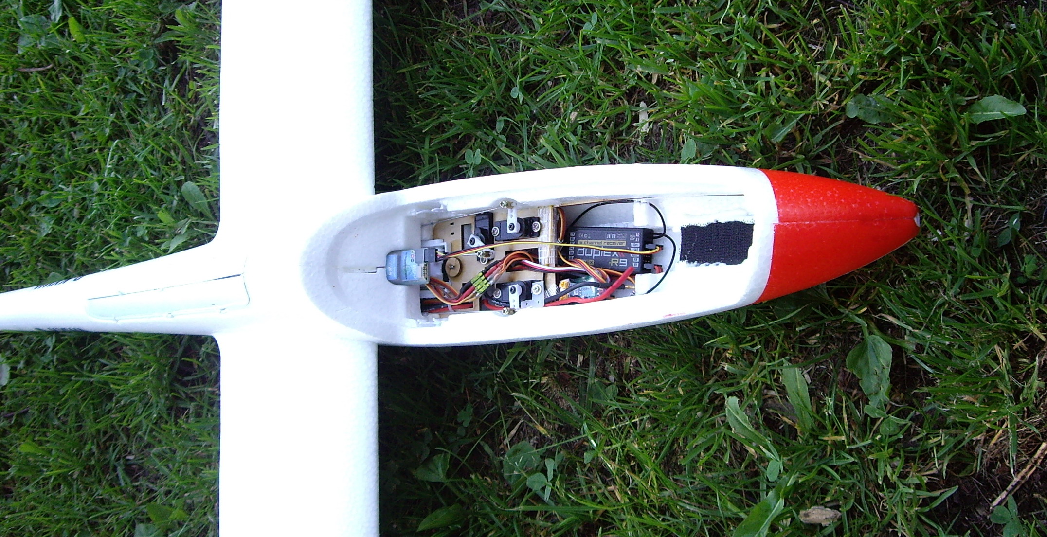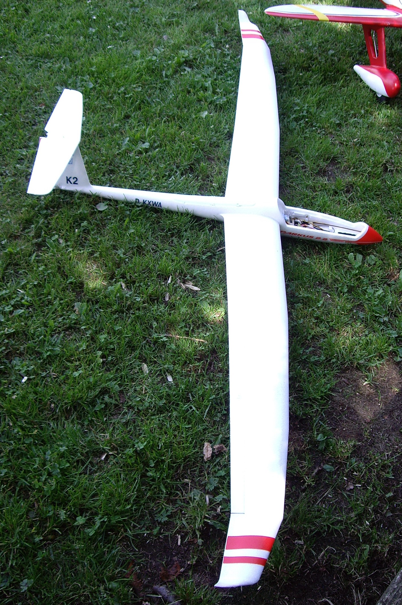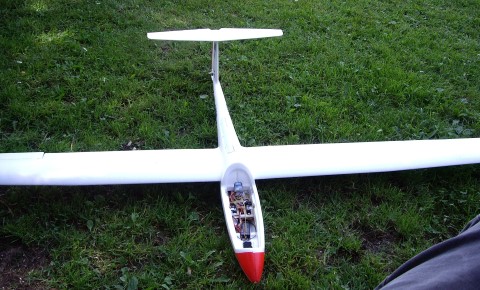 Zu den Flugeigenschaften ist wenig zu sagen. Das Modell ist einfach zu steuern. Durch den vergleichsweise kurzen Rumpf wirkt es hin und wieder etwas instabil um die Hochachse. Die langen und dünnen Flächen biegen sich bei schnelleren Flugmanövern. Die Thermikeigenschaften sind mäßig, schnell machen kann man den Flieger auch nicht. Bewegt wird das Modell zwischen 20 und 65 km/h ( über Grund, mit GPS gemessen ), die Steigleistung liegt bei ca. 4 m/s. Der Antrieb zog, sei es durch das Kippmoment oder eingebauten Sturz, nach unten. Dies wurde durch Beimischen von Höhe kompensiert. Die Motorbefestigung wollte ich mit Rücksicht auf den Klappmechanismus nicht ändern. Die Landeklappen sollte man erst einmal in größerer Höhe ausprobieren, da hier ebenfalls Höhentrimm beigemischt werden muss - und zwar reichlich. Das Einziehfahrwerk ist zwar hübsch anzusehen, die Klappen, die das Fahrwerk im eingezogenen Zustand verdecken ( wie sich das gehört) gehen aber auch nach unten und drohen im Gras hängen zu bleiben, wenn das Rad einsinkt.