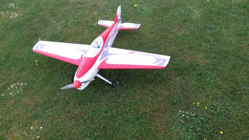 Die Flugeigenschaften sind erwartungsgemäß gut. Das Modell hat einen breiten Geschwindigkeitsbereich. Es kann "RC-1- mäßig" schnell und weiträumig geflogen werden, aber auch langsamer mit 3D-Einlagen. Der Akku ist überdimensioniert. 4 Zellen hätten es wohl auch getan. Man hat kaum das Bedürfnis nach Vollgas, die Kapazität reicht für eine Viertelstunde - wenn es sein muss. Etwas irritierend ist die hinten nach unten geschwungene Rumpfform. Im Stand sieht das elegant aus, in der Luft meint man, das Modell wäre stark hecklastig und mit hängendem Rumpfende unterwegs.
