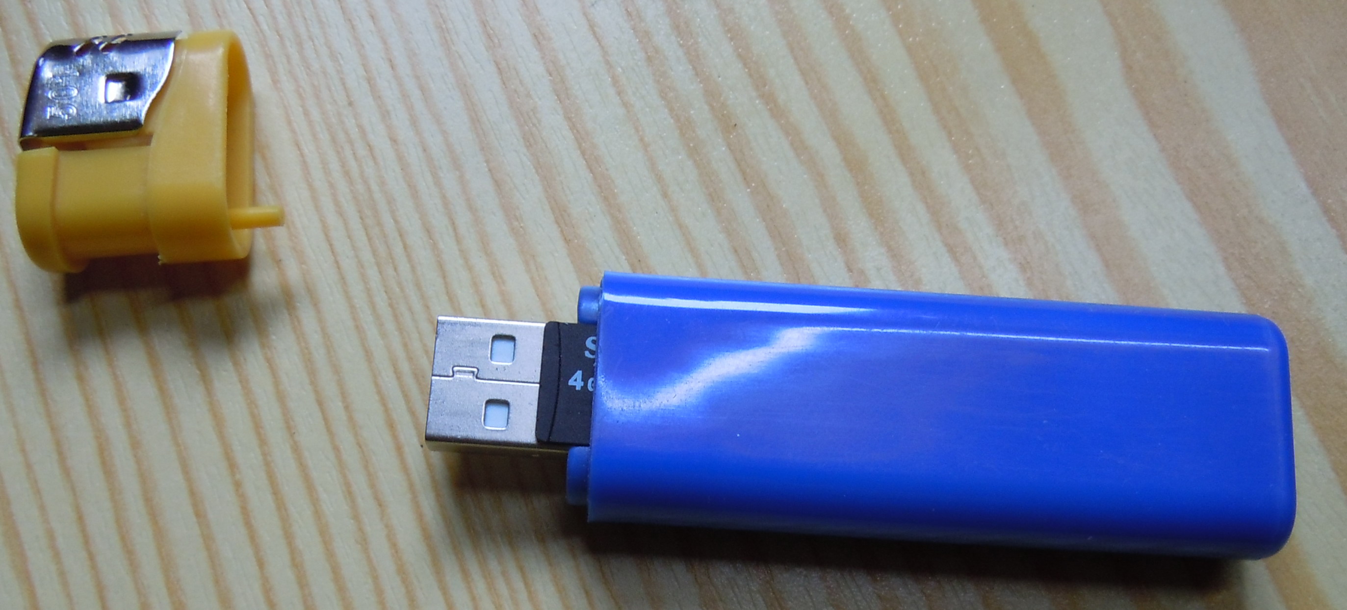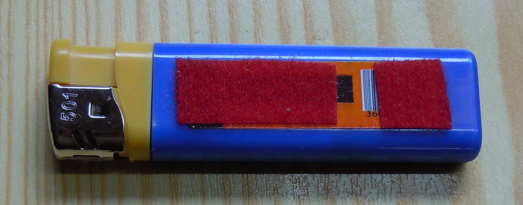 Die Teile gibt es in der Bucht überwiegend als Autoschlüssel verkleidet, wegen der besseren Befestigung im/am Modell mit Klettband habe ich mich für die Feuerzeugvariante entschieden.