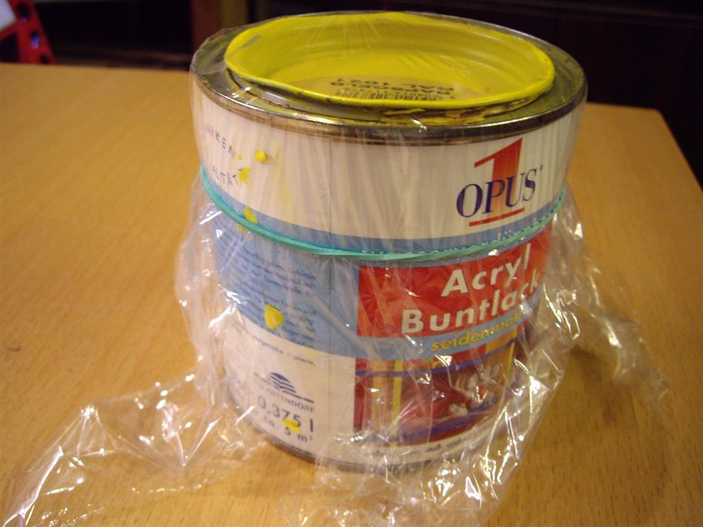 Ein- oder zweimal Farbe aus der Dose entnommen, evtl. ist der Deckel durch den Einsatz eines Schraubenziehers nicht mehr dicht -schon trocknet der Farbrest ein.