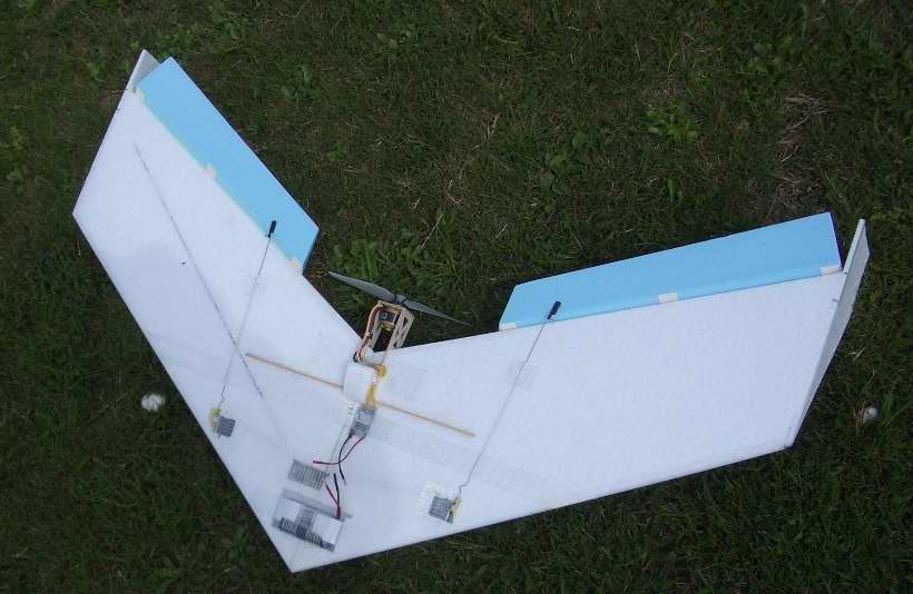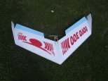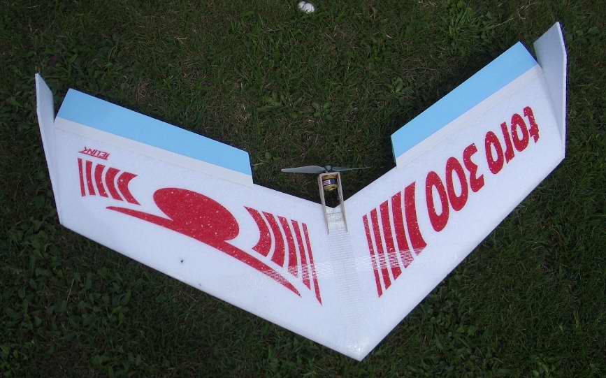 Zur Ergänzung meiner Luftflotte fehlte noch ein Pfeil-Nurflügler. Aus EPP sollte er natürlich bestehen. Der Toro 300 von Telink, bezogen über die Fa.Hepf, ist mit 93cm Spannweite sehr transportfreundlich, wirkt aber aufgrund der Flächentiefe nicht klein. Das Modell kommt weit vorgefertigt aus dem Kasten. Die Querruder sind bereits angeschlagen und mit Ruderhörnern sowie vorgebogenen Schubstangen versehen. Die Flächenhälften sind bereits mit Holm sowie Glasfasertape versehen und enthalten passende Ausnehmungen für Empfänger, Akku, Servos und Regler. Somit sind nur die Flächenhälften zusammen zu kleben und die Winglets anzubringen. Die Flächenhälften müssen an der Klebestelle etwas nachgeschliffen werden, die Winglets könnten zwecks besserer Optik und Positionierung unten dem Profilverlauf entsprechend geschnitten sein. Statt des zum Modell gehörenden Speed 300 mit Getriebe habe ich einen Axi 2208/26 mit 7x5 APC Elektro eingebaut. Hepf liefert dafür einen sauber gefrästen Motorträger aus Sperrholz, der bündig sitzt und mit zwei Streifen Klebeband fixiert werden kann und einen präzise gefertigten Prop-Saver. Eigentlich wollte ich 3 Lipos einbauen. Aus Zeitmangel habe ich zunächst probeweise 2 Zellen E-Max Ion mit 1400 mAh eingebaut. Zum Trimmen kamen dann noch 15 gr Blei in den Motorraum. Mit den 2 Zellen zieht der Motor bei 6,7V nur 6,8A. Mit diesen 45W Eingangsleistung steigt der Nuri bereits mit mehr als 45°, ist flott unterwegs und macht riesige Loopings ( sehr kleine natürlich auch). Eine Akkuladung reicht für 2 ausgedehnte Flüge. Das Modell braucht so wenig Leistung, dass es auch noch mit Halbgas anständig fliegt. Mit dem Originalantrieb müßten sich daher auch gute Flugleistungen ergeben. Die Flugeigenschaften sind angenehm. Der Toro fliegt recht stabil, ist sehr wendig und bis 3-4 Windstärken noch gut beherrschbar. Auch Segeln ist möglich, bei Wind macht sich allerdings das geringe Fluggewicht bemerkbar. Das oben noch im Rohzustand abgebildete Modell wurde zwecks besserer Erkennung der Fluglage aus größerer Entfernung auf der Unterseite und den Winglets mit Acryl-Farbe und Leuchtfarbe aus der Sprühdose kontrastreich lackiert.